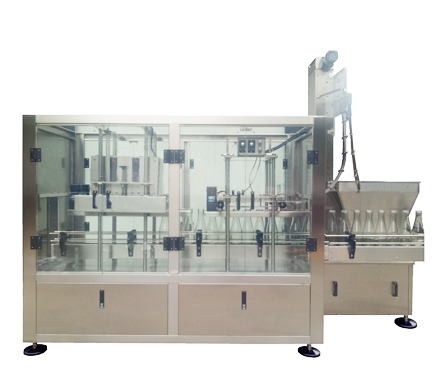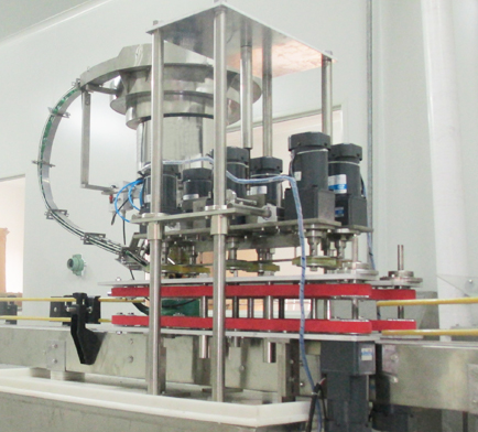 KLP-SC11上盖搓盖机首先把盖子倒入提升机设备,提升机运行把盖子送到上盖位,当输送线把产品输送到上盖机工位,上盖机自动上盖子,进入到搓盖机利用胶轮反向摩擦的原理对三旋四旋盖及无防盗环的塑料盖旋紧的一种旋盖机械.该机最大特点是旋盖速度快,合格率高.结构简单,调整方便,无需人工.不同瓶型瓶盖的更换无需更换搓盖机配件.可与各种灌装机配套组成生产线。