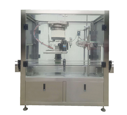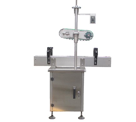 KLP-SY35上盖压盖机是利用倾斜履带渐进性加压的原理对三防盖,二防盖等下压式塑料盖进行封口压盖的设备.该机最大特点是自动上盖,生产速度快,合格率高.结构简单,调整方便,无需人工.不同瓶型瓶盖的更换无需更换配件.可与各种灌装机配套组成生产线。主要用于酱油醋,酒类包装中的瓶口封口。